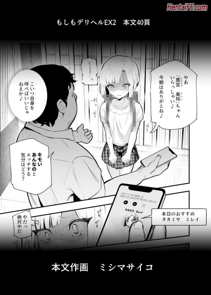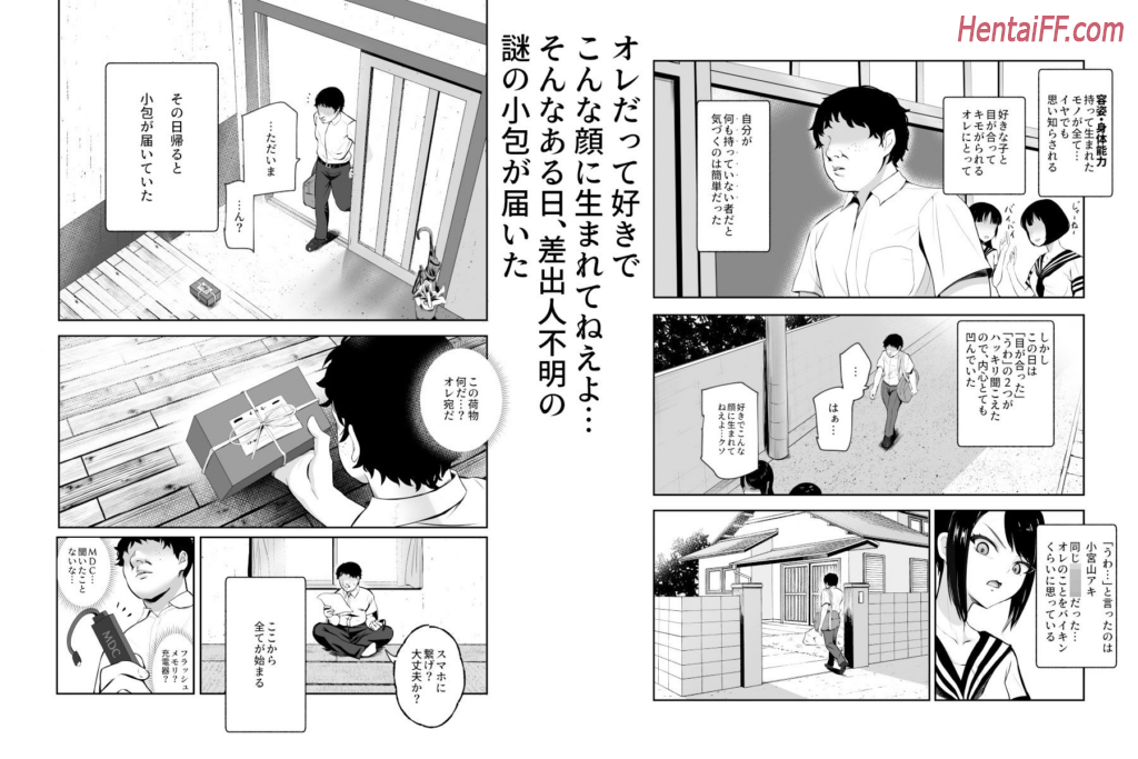 The protagonist feels hopeless and desperate because he is being denigrated for his physical appearance. His life changes when he receives a mysterious package containing a device that plugs into his phone. When he connects the device, he automatically calls Ozawa, his cute classmate. After accidentally calling her, Ozawa appears before him willing to have sex as his prostitute. Although at first he thinks it is a dream, he eventually realizes that it was all real.