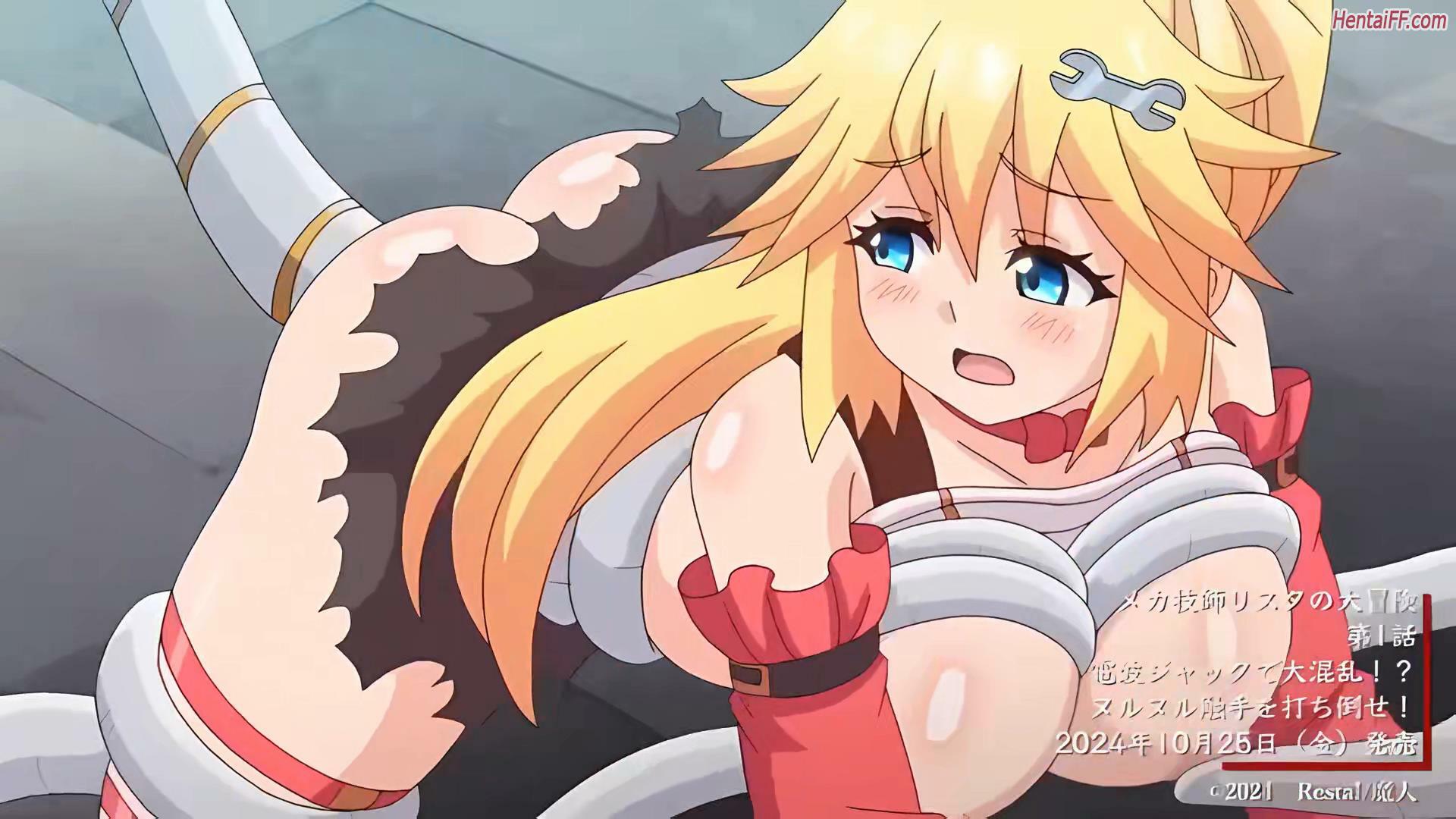 A certain incident occurs in a city where robots go crazy and turn into sex robots that rape women. Resta, a mechanic, sets out to solve the problem, but is confronted with slimy tentacles and vibrators that lead her into sexual situations. Despite this, she strives to fight bravely against the hentai robots. メカ技師リスタの大冒険, Mecha Gishi Resta no Daibouken, Mecha Gishi Resta no Daibōken, Mechaneer Resta's Grand Adventure